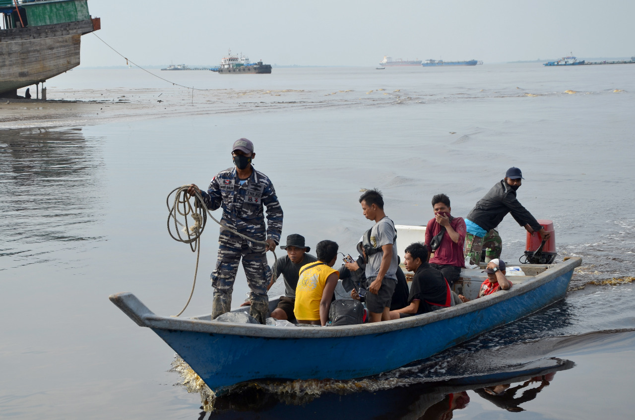 Selanjutnya calon PMI (Pekerja Migran Illegal) dibawa menuju Pos TNI AL Tanjung Medang/Wilayah Sungai Dumai oleh Tim Lanal Dumai.