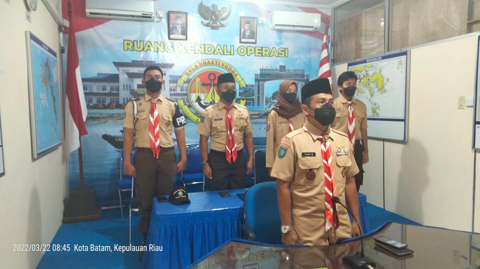 Batam, jacindonews – Komandan Lanal Batam Kolonel Laut (KH) Farid Maruf, S.H., M.H., selaku Kapin Saka Bahari Wilayah Lanal Batam didampingi oleh Paspotmat Lanal Batam Mayor Mar Cisworo, melalui video conference (vicon) mengikuti Apel Gabungan Saka Bahari Nasional, bertempat di Ruang Kendali Mako Lanal Batam, Selasa (22/03/2022).