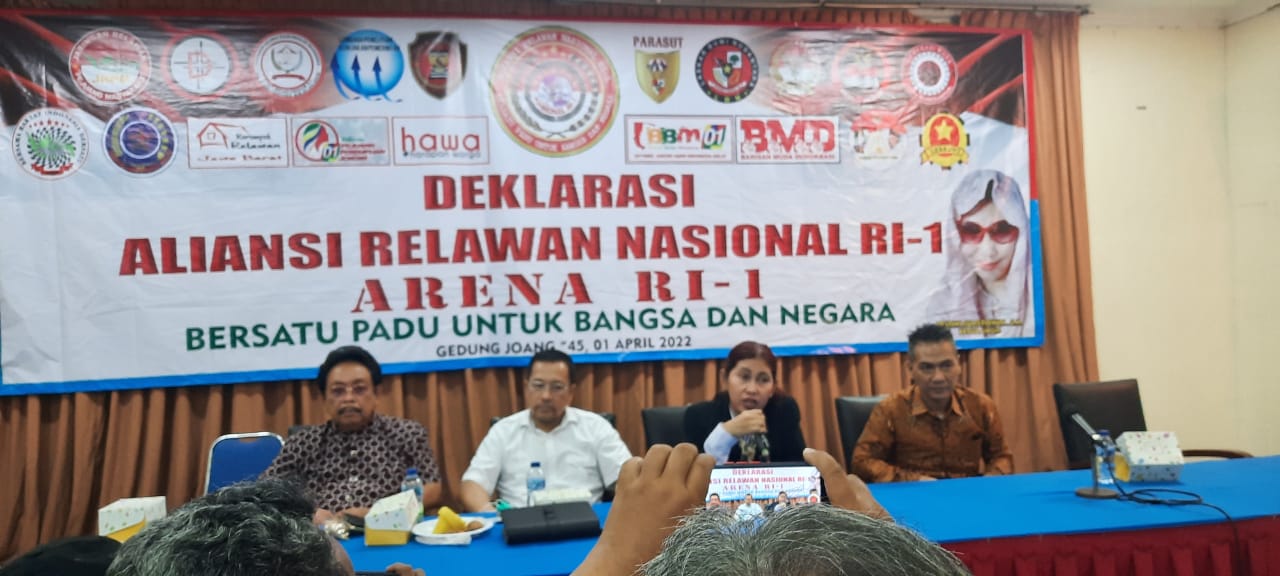JAKARTA | Jacindonews – Hari ini kelompok yang menamakan diri Aliansi Relawan Nasional RI-1 (ARENA RI-1) resmi mendeklarasikan dirinya. Deklarasi digelar di Gedung Juang 45, Menteng, Jakarta Pusat pada hari Jumat (1/4/2022), pukul 14.00 WIB.