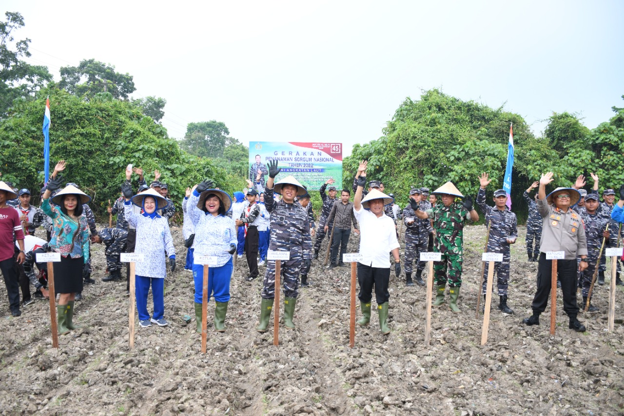 Jacindonews | Tanjung Balai – Pangkalan TNI AL Tanjungbalai Asahan Bersama Forkopimda sukseskan Gerakan Nasional Penanaman Sorgum di 77 titik lokasi oleh TNI Angkatan Laut dalam rangka menyambut HUT TNI Angkatan Laut Ke-77 pada tanggal 10 September 2022 yang berlangsung dilahan kosong Lanal TBA di Kecamatan Sei Tualang Raso, Kota Tanjungbalai, Jumat (09/09/2022).
