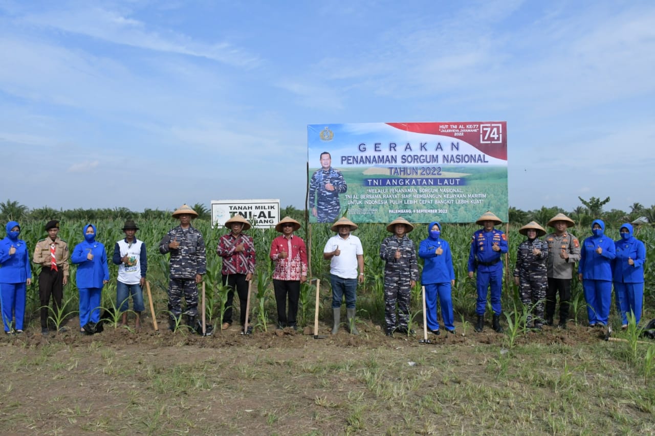 Pada kesempatan tersebut, Komandan Lanal Palembang menyampaikan bahwa, Gerakan Nasional Penanaman Sorgum Tahun 2022 merupakan salah satu upaya kita dalam menindaklanjuti Program Ketahanan Pangan Nasional, terutama untuk memenuhi ketersediaan pangan ketika terjadinya musim paceklik atau gagal panen. Dengan adanya kegiatan penanaman Sorgum ini diharapkan dapat menstimulasi masyarakat Indonesia untuk turut serta mendukung program swasembada pangan.