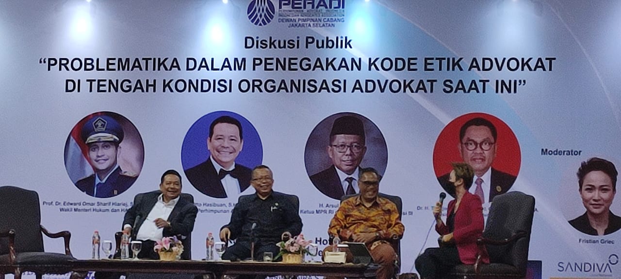 Oleh karena itu, PERADI mengadakan Diskusi Publik dengan tema “Problematika Dalam Penegakan Kode Etik Advokat di Tengah Kondisi Organisasi Advokat Saat Ini.” Acara berlangsung pada hari Selasa, (13/09/2022), pukul 11.00 wib – 17.00 wib, bertempat di Hotel Bidakara Grand Pancoran, jalan Gatot Subroto Kav. 71-73, Jakarta Selatan. Acara diadakan secara Online (zoom) dan Offline.