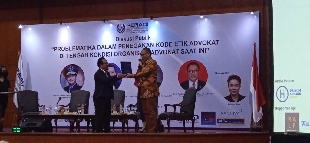 JAKARTA | Jacindonews – “Jadi kalau menurut saya, kita melihat kedepan. Yang paling lama yang sudah dilakukan dengan sistem single bar dari keorganisasian advokat, hal ini saya kira tetap merupakan pengalaman. Tapi masa sekarang ini, faktanya kan sekarang banyak orang pindah sana pindah sini ke organisasi advokat yang lainnya kalau tidak cocok. Saya setuju dengan Bang Arsul (Arsul Sani -Wakil MPR RI- red). Tadi beliau mengatakan bahwa perlu ada dewan regulator ataukah dewan etik yang bisa membawahi semua,” ujar Dr. TM. Luthfi Yazid, SH, LL. M (Vice President Kongres Advokat Indonesia) ketika hadir dalam acara Diskusi Publik dengan tema “Problematika Dalam Penegakan Kode Etik Advokat di Tengah Kondisi Organisasi Advokat Saat Ini.” Acara berlangsung pada hari Selasa, (13/09/2022), pukul 11.00 wib – 17.00 wib, bertempat di Hotel Bidakara Grand Pancoran, jalan Gatot Subroto Kav. 71-73, Jakarta Selatan.
