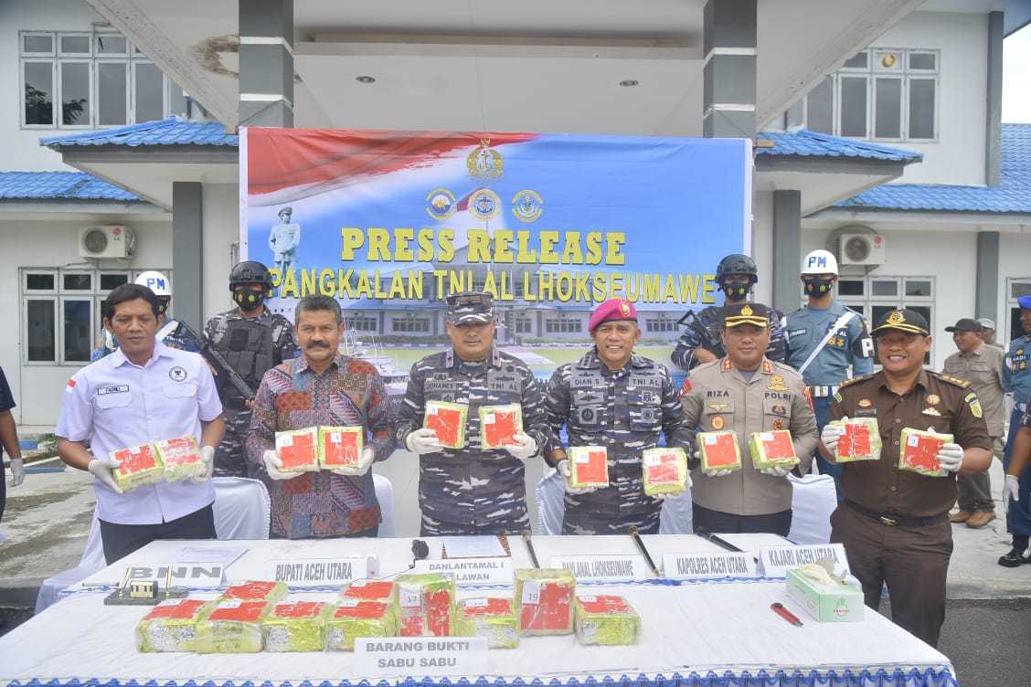 Dalam Press Conference, Komandan Lantamal I menyampaikan bahwa berawal dari informasi intelijen terkait dugaan penyelundupan narkoba lewat laut di wilayah Aceh Utara. Lanal Lhokseumawe melaksanakan penyelidikan dan pengembangan informasi tersebut sehingga Tim Intel Lanal Lhokseumawe mendapatkan informasi tentang area tempat penyembunyian barang bukti di Desa Lhok Puuk Kecamatan Seunuddon, Kabupaten Aceh Utara.