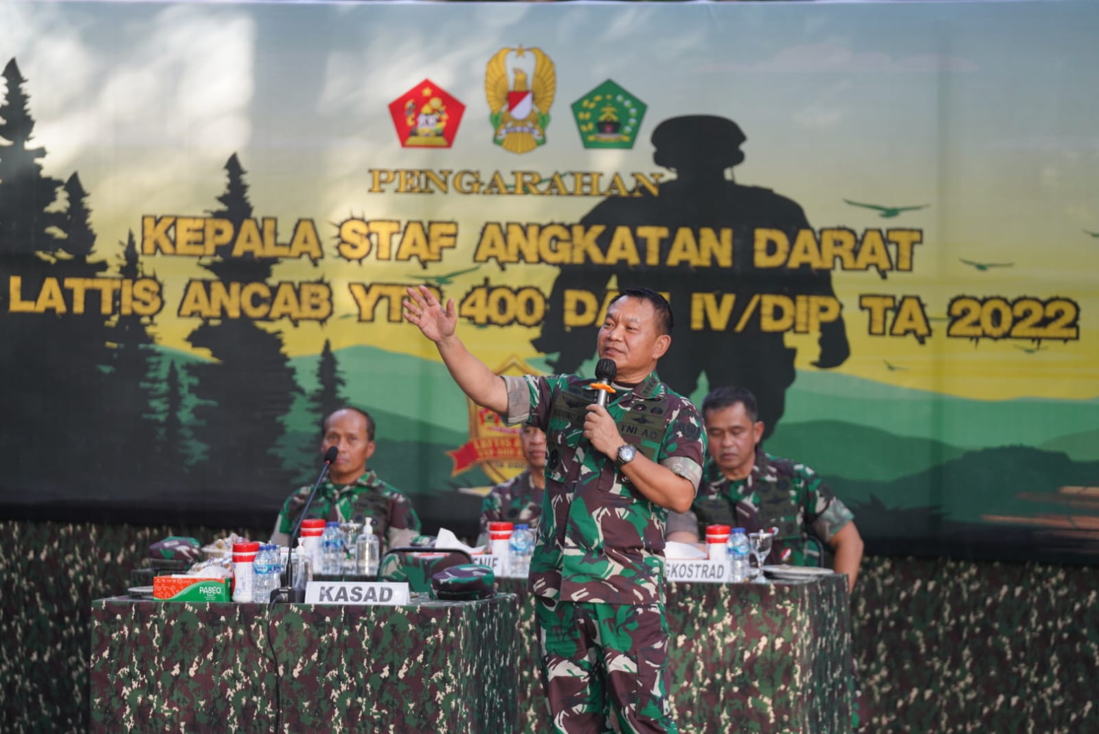 Kepala Staf Angkatan Darat (Kasad) Jenderal TNI Dr. Dudung Abdurachman meninjau langsung mekanisme latihan Batalyon Tim Pertempuran (YTP) Yonif Raider 400/BR yang digelar Pusat Latihan Tempur (Puslatpur) Kodiklatad, Baturaja, Ogan Komering Ulu (OKU), Sumatera Selatan, Minggu (2/10/2022).