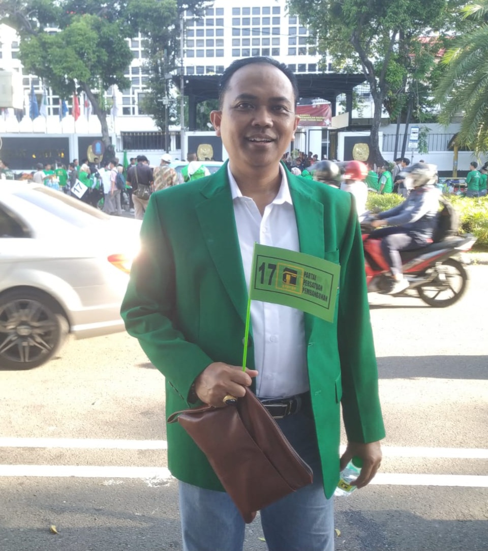 Para petinggi dan simpatisan PPP ikut konvoi menggunakan sepeda. Tampak Plt Ketum PPP Muhamad Mardiono dan Sekjen PPP Arwani Thomafi menggunakan sepeda listrik hijau. Terlihat pula atraksi marching band mengiringi rombongan PPP ke KPU.
