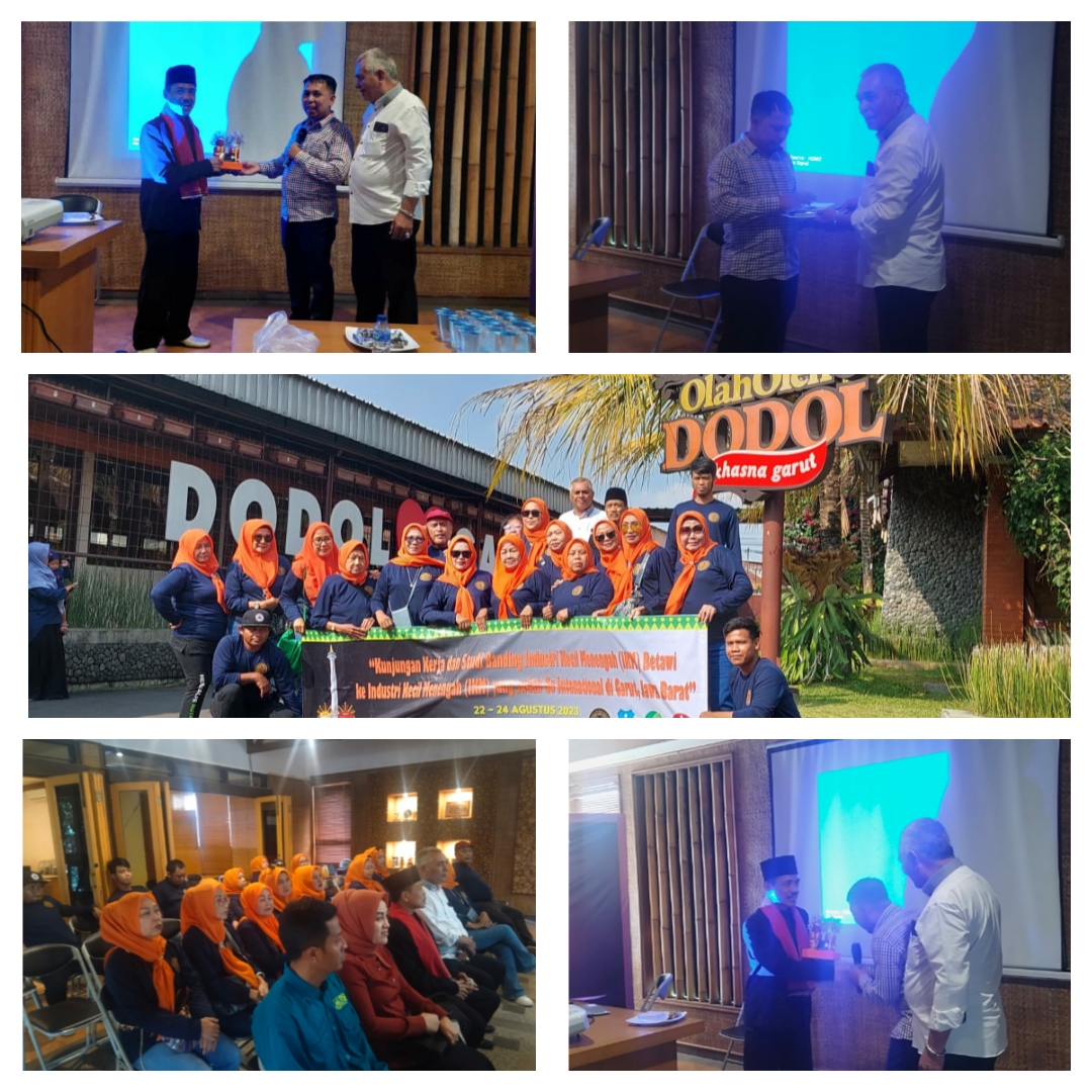 GARUT, JNews – Ditengah presentasi pada acara kunjungan kerja sekaligus studi banding di pabrik dodol tertua dan terbesar di kota Garut, Jalih Pitoeng berikan anak ondel-ondel salah satu ikon Betawi kepada pihak ‘Picnic’ selaku produsen dodol terbesar di Garut.