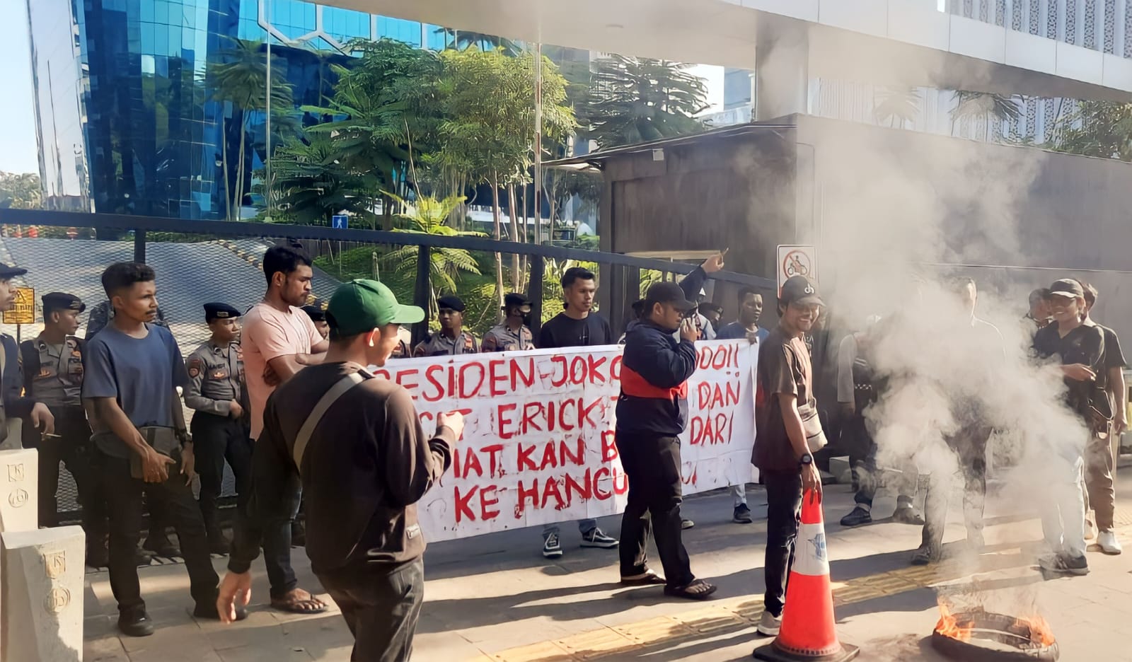 Rizky Marbun Kordinator Aksi kepada awak media mengatakan, Hampir 5 tahun, BUMN dikelola Erick Thohir. Banyak masalah, banyak hutang, dan banyak tidak transparan. Erick Thohir harus malu dan mundur, ini mengelola kepercayaan rakyat dan presiden, bukan mengelola sepak bola” ujar rizki selaku koordinator aksi.