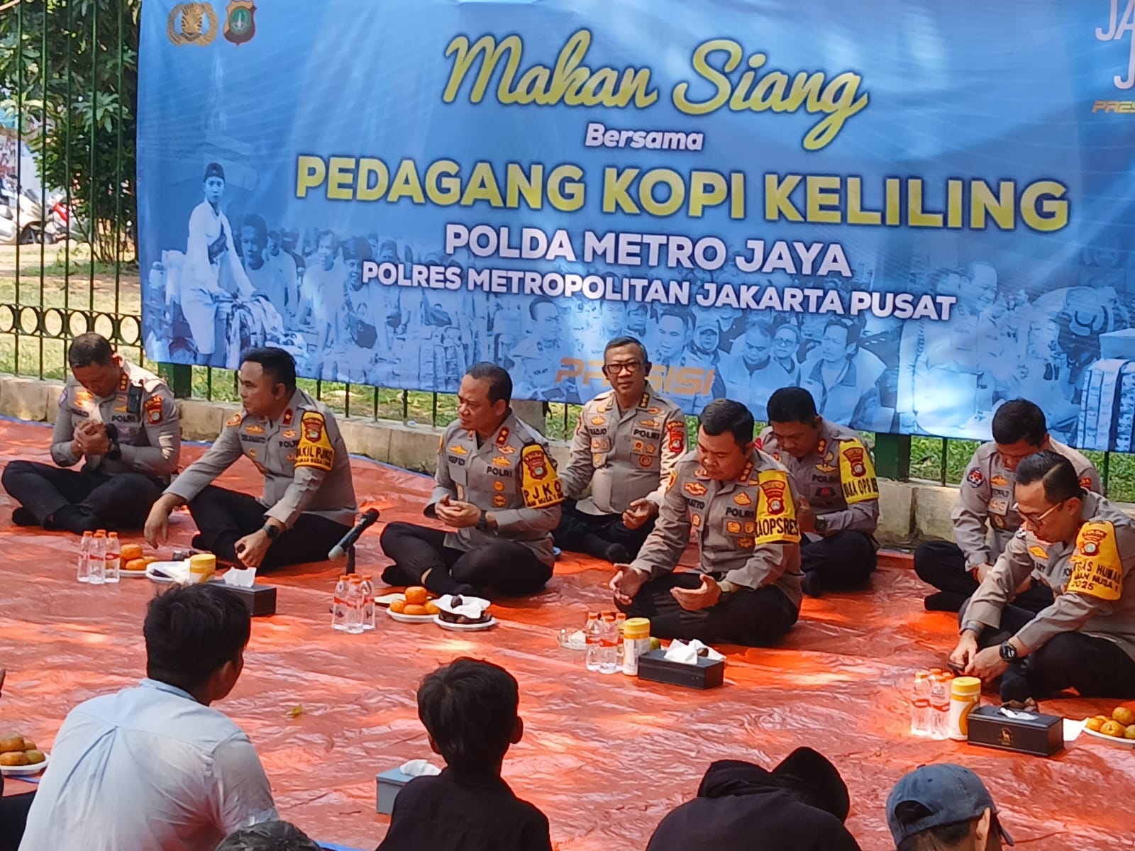 JAKARTA | JacindoNews – Sebagai bentuk kepedulian POLRI dan menjaga Presisi Aman Tertib bersama Polda Metro Jaya, dengan tag line Jaga Jakarta+, maka diadakan acara Makan Siang bersama Pedagang Kopi Keliling daerah Monas, Jakarta Pusat.