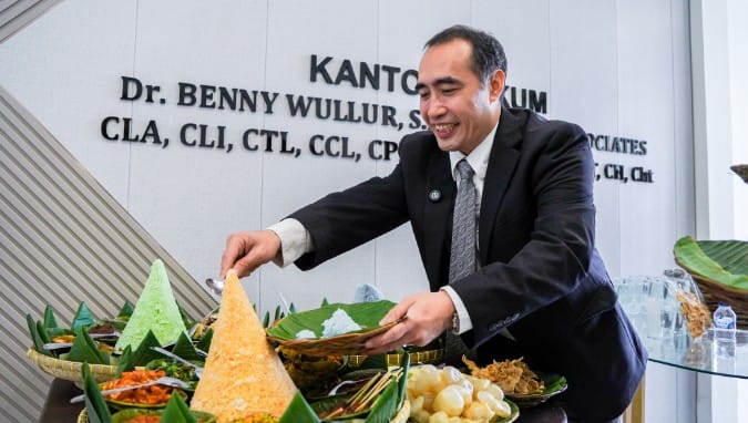 Pembukaan Kantor hukum Dr. Benny Wullur,S.H.,M.H.Kes (Advokat-Kurator-Pengurus) diresmikan dengan ditandai gunting pita, pemotongan tumpeng dan ucapan doa syukur yang disaksikan dan dihadiri oleh para klien-kliennya, Sabtu (18/10/2025).