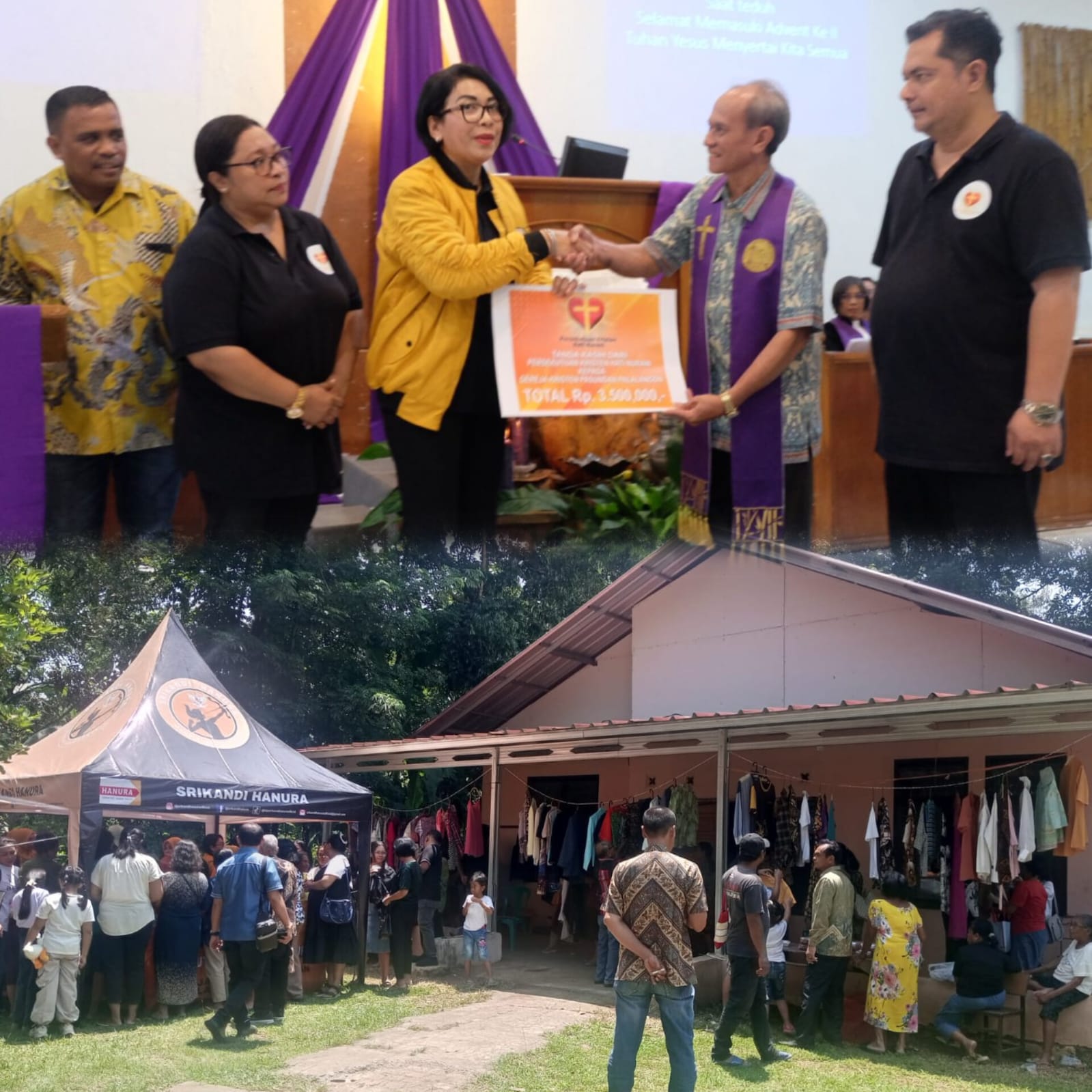 Selain Bazar, secara simbolis Ketua Panitia Natal sekaligus Ketua Kegiatan Pra Natal, Herlina bersama Ketua Persekutuan Kristen Hati Nurani, Rudy Saragih mewakili Persekutuan memberikan bantuan untuk pekerjaan Tuhan berupa uang kepada Pimpinan GKP Palalangon, Cianjur.